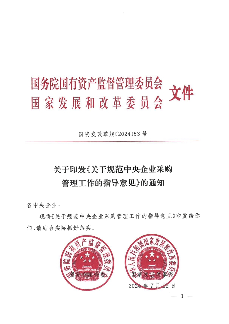 国务院国资委、国家发改委印发《关于规范中央企业采购管理工作的指导意见》